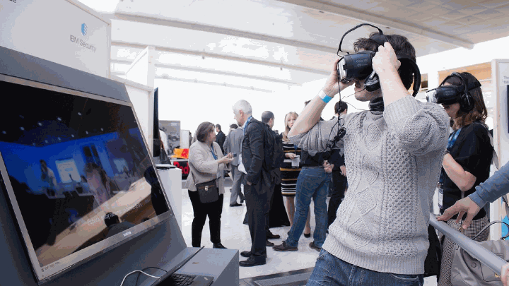 Trabajador practicando el uso de un equipo industrial usando lentes de  Realidad Virtual